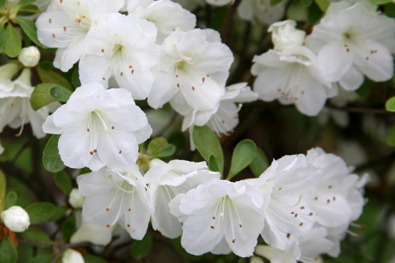 Lovely clusters of blooms that are pure white cover this azalea in mid to late spring; an upright shrub that is great for planting in groups; needs highly acidic and organic soil that is well drained