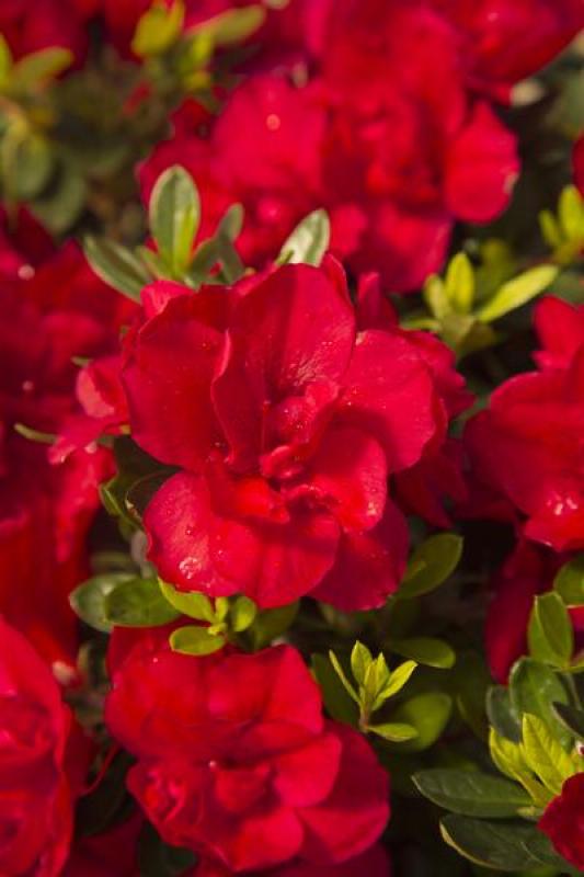 A fast-growing dwarf azalea, the new Autumn Bonfire glows with numerous, true red, semi-double and single blooms in spring, summer and fall. Autumn Bonfire holds its bright green foliage year-round.